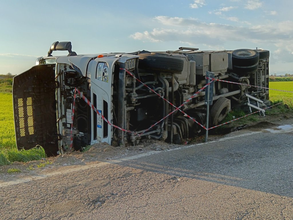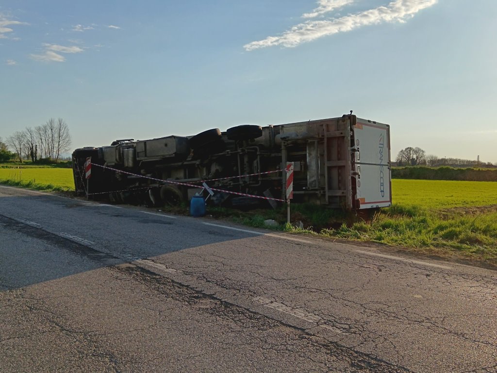 Pescarolo, si ribalta camion