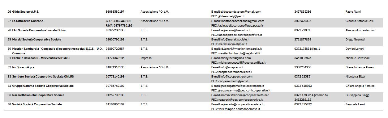 A queste prime 36 realtà associative se ne potranno aggiungere altre, nell’arco di una prossima finestra temporale.