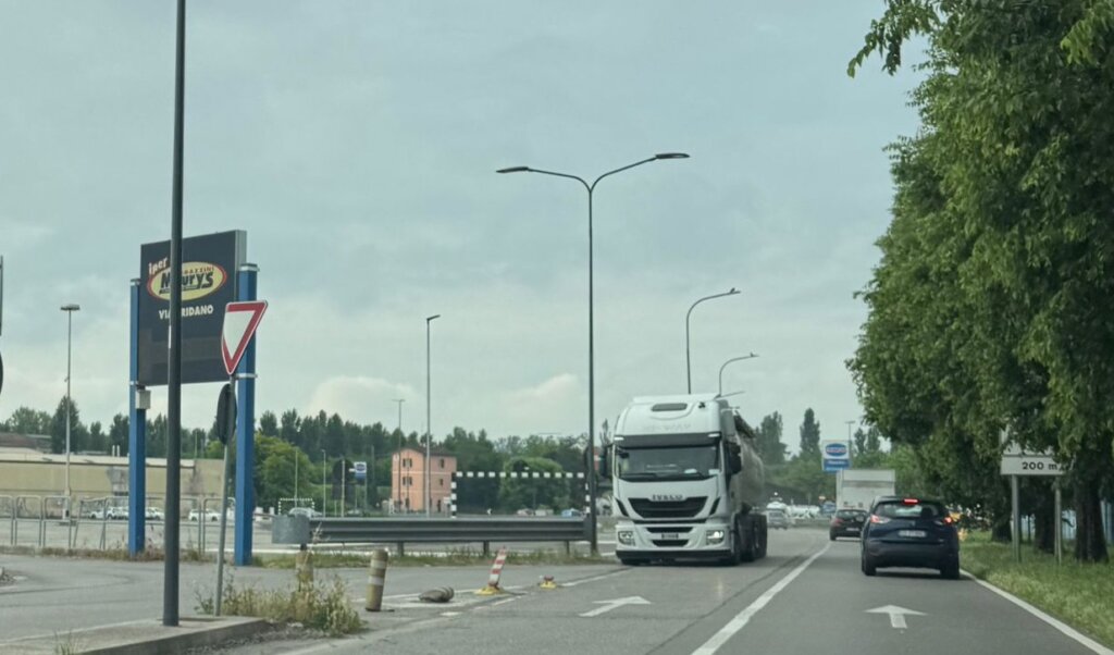 Il Tir ha percorso contromano il tratto di strada che è destinato all’immissione per chi arriva dalla curva di fronte a Cascina Moreni.