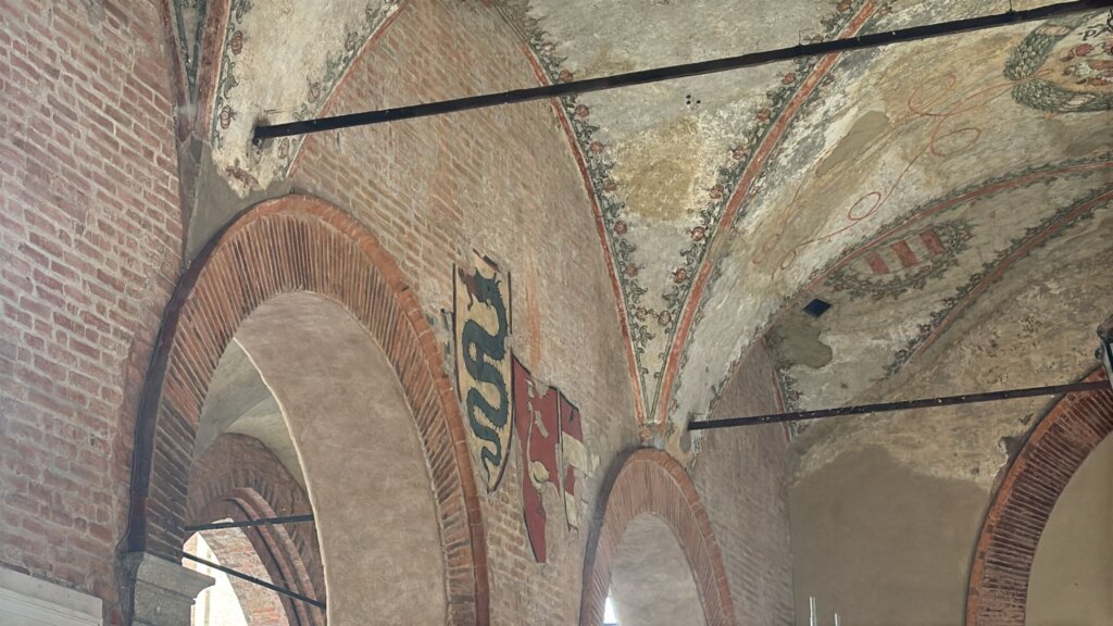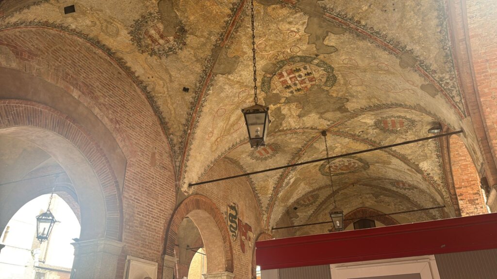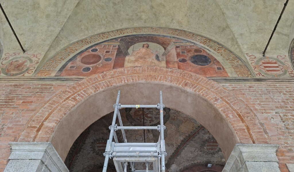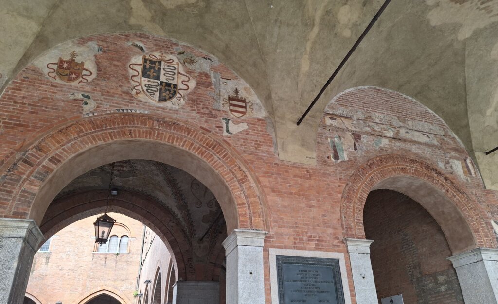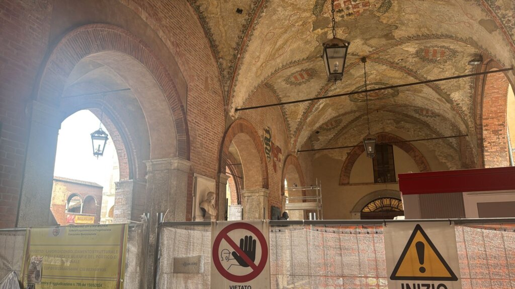Gli archi di palazzo comunale a Cremona sono tornati liberi dai ponteggi. Il cantiere di consolidamento non è ancora terminato e proseguirà fino a giugno, ma si vedono pienamente gli affreschi restaurati. 420mila euro i soldi stanziati dal Comune per il consolidamento della struttura.