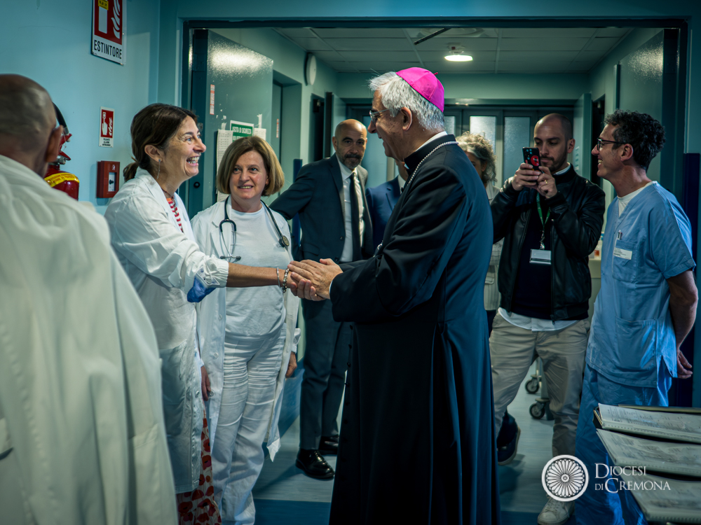 Una mattinata tra le corsie dell’Ospedale di Cremona incontrando i ricoverati e i loro famigliari, il personale e i volontari, nel segno della speranza a cui il Giubileo invita a volgere lo sguardo e che, in un luogo come questo, riesce a farsi concreta grazie al contributo di tanti. In questo modo il vescovo Antonio Napolioni venerdì 16 maggio presso l’Asst di Cremona ha concluso l’iniziativa giubilare “Una croce di speranza” che, promossa dalla Pastorale della salute della Diocesi di Cremona, a partire dalla Quaresima si è concretizzata in una peregrinatio crucis che ha coinvolto strutture sanitarie e assistenziali della città di Cremona e che, dopo l’ultima tappa in Ospedale, proseguirà nelle prossime settimane nella zona casalasco-mantovana della diocesi. Un’iniziativa per far vivere alle persone ricoverate nelle residenze sanitarie, nelle case di riposo e di cura l’esperienza giubilare, pur nell’impossibilità fisica di raggiungere le Porte Sante a Roma o le quattro chiese giubilari presenti in diocesi.
