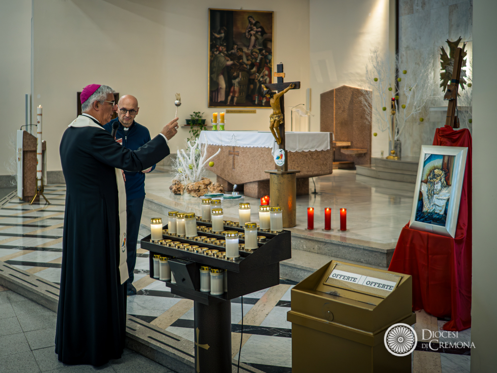 A margine del momento di preghiera e riflessione in chiesa anche il dono, da parte dei coniugi Grazia Bidini ed Emilio Carubelli, alla chiesa dell’Ospedale di un quadro raffigurante il volto di Gesù Crocifisso che il vescovo ha benedetto.