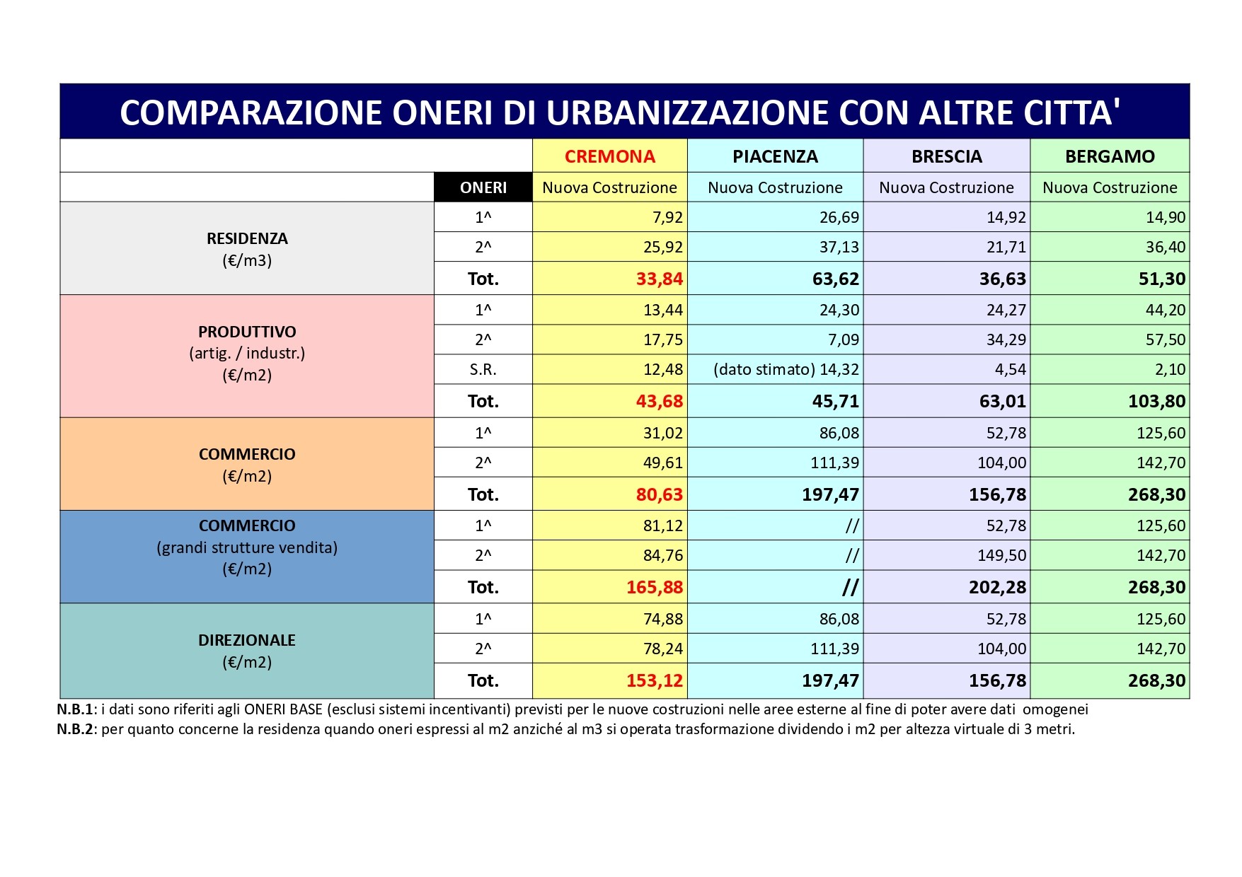 “Dopo dieci anni era giusto ritoccare gli oneri di urbanizzazione. Per il settore residenziale abbiamo applicato l’adeguamento Istat (20%), senza aumenti e senza sconti, per altre categorie abbiamo spinto sugli aumenti (30% per logistica, medie e grandi strutture di vendita), e per altre ancora abbiamo ridotto gli stessi (10% servizi di quartiere). L’aumento degli incentivi, che in certi casi si attesta sul 35% (classe energetica A4), spiega che a Cremona se si costruiscono servizi di vicinato e se li si costruisce bene, si paga davvero poco come dimostrano le percentuali contenute nella tabella di raffronto con altre città vicine”.