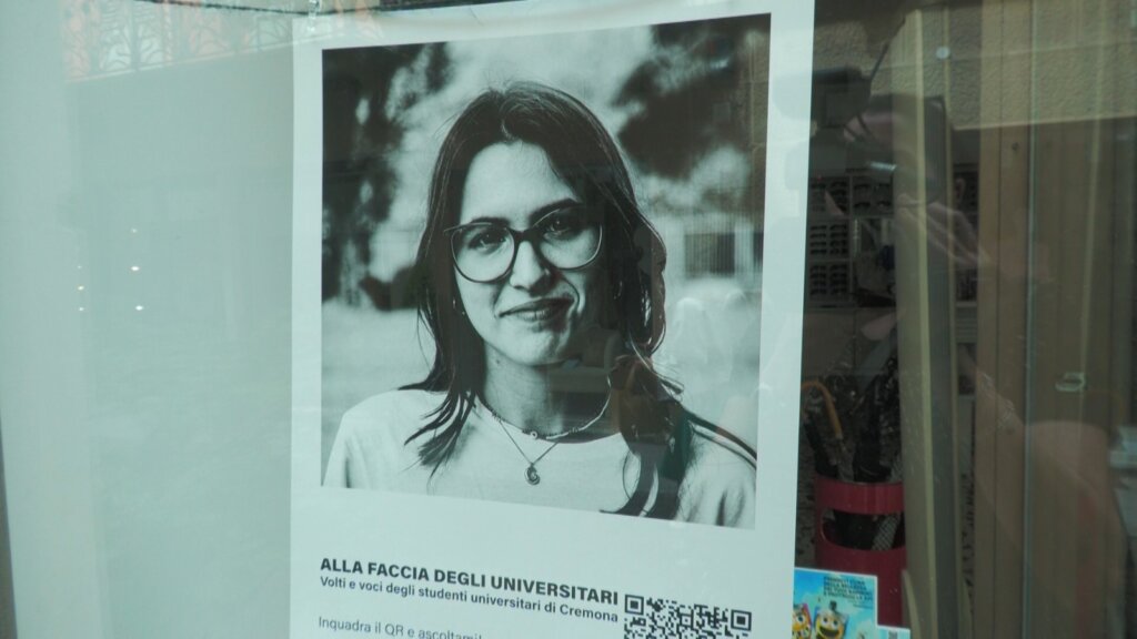 La mostra si compone di 155 ritratti fotografici di studenti universitari cremonesi o che frequentano università con sede a Cremona (Università di Pavia, Politecnico di Milano, Università Cattolica, Università di Brescia, Conservatorio di Cremona) che saranno esposti nelle vetrine dei negozi del centro città. Tutti i ritratti sono accompagnati da un QR code che consente – se inquadrato con uno smartphone – di ascoltare la voce dei soggetti fotografati i quali, in una manciata di secondi, raccontano di sé, dei loro sogni, dei progetti per il futuro e delle necessità presenti. Il fine dell’iniziativa è quello di rendere visibile la presenza dei giovani nel cuore del tessuto urbano, attraverso l’esposizione diretta di chi intende letteralmente “mettere la faccia” e prendere la parola per significare l’importanza di una generazione che rappresenta una risorsa e un volano di crescita anche culturale della città. Gli scatti sono stati realizzati da Camilla Bassorizzi, una giovane fotografa che frequenta il corso di laurea magistrale in Fonti e strumenti per la storia dell’arte. A coadiuvarla, il “Collettivo 50 mm” formatosi all’interno del corso di Storia della fotografia che si tiene presso il Campus cremonese dell’Università di Pavia (Prof.ssa Elena Mosconi): un gruppo di giovani – di cui fanno parte Sara Abeni, Anna Baronio, Alice Guarneri, Maria Maruffi, Carlotta Melgari, Alessandro Paolicelli, Martina Ponzoni, Emanuele Riccobono, Iris Zucca oltre, naturalmente, a Camilla Bassorizzi.