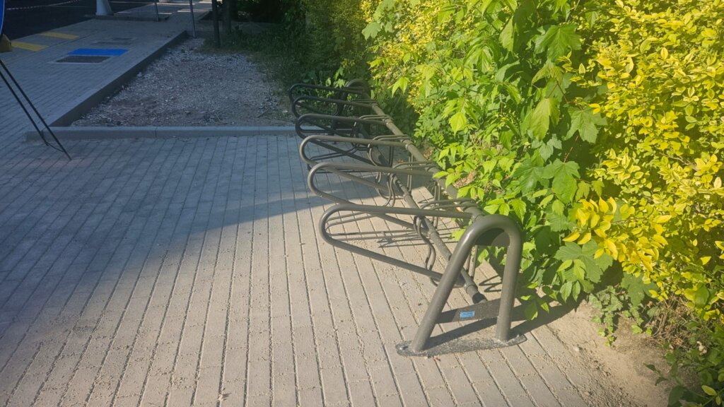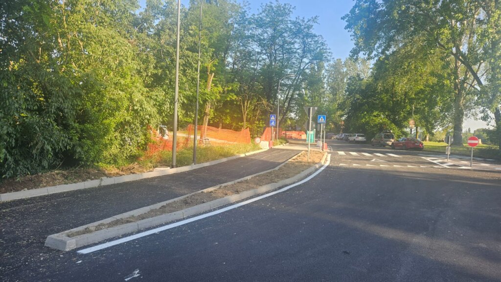 stalli auto, asfalto e ciclabile
