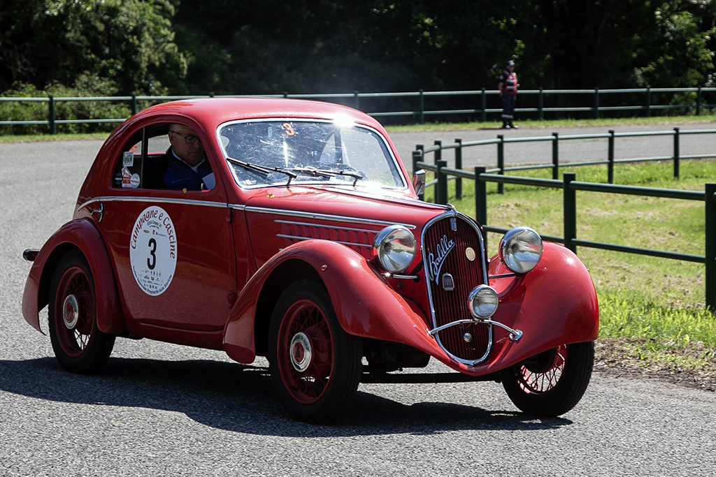 Presenti auto molto importanti e che hanno fatto la storia delle quattro ruote spiega Gregori: Parliamo di mezzi dell’anteguerra molto belle, costose anche a livello economico, ma principalmente molto belle partono dal 25, una Bugatti bellissima T35 del, una Balilla Mille Miglia aerodinamica, tra l’altro un pezzo molto raro. Abbiamo delle Balille Coppa d’Oro, l’OM, una macchina molto importante e per finire anche una la Lancia Lambda.