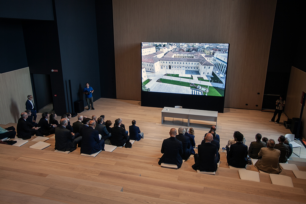 I lavori di rigenerazione del compendio sono durati poco più di due anni ed hanno interessato un’area con un’estensione di 30.000 mq ed una superficie costruita di più di 20.000 mq. La tipologia dei lavori ha spaziato dal restauro conservativo nella parte più antica dei chiostri alla nuova costruzione per l’edificio che ospiterà le funzioni didattiche e l’auditorium.