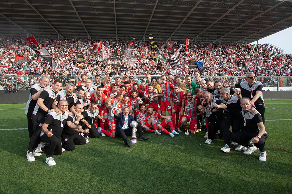 Proprio l’allenatore grigiorosso è stato l’ultimo ad entrare in campo, con la carica di tutto lo stadio Zini: “Con lo Spezia e mister D’Angelo è andata bene, ma noi abbiamo fatto un percorso straordinario a questi playoff. Grazie a tutti quanti, soprattutto ai miei ragazzi. Il pubblico, la piazza hanno risposto presente, lo Zini si merita la Serie A”.
