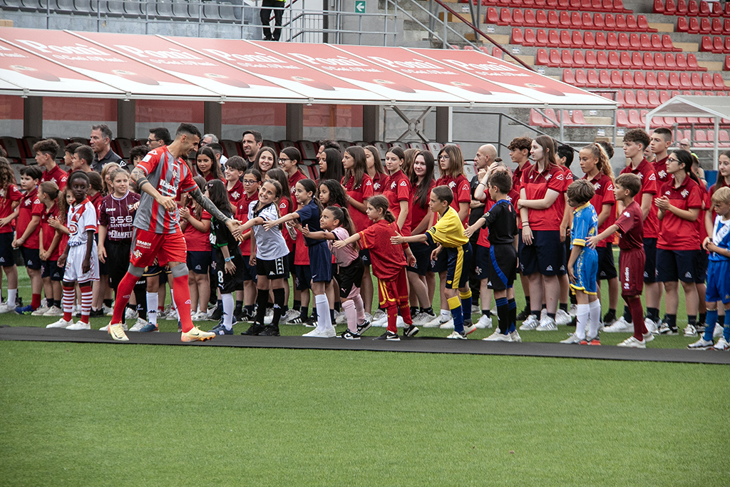 Sul palco, allestito a metà campo, i due presentatori Eleonora Busi e Gianni Balzarini circondati dal settore giovanile grigiorosso, davanti la curva sud, gremita di tifosi a godersi lo spettacolo.