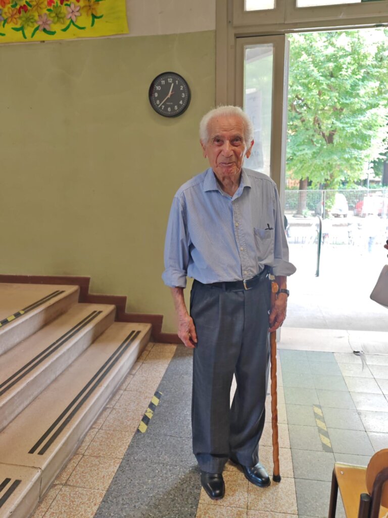 Si chiama Michelangelo Scutellà e ha votato oggi a uno dei seggi della suola Monteverdi, in via Oglio. Classe 1923, è il più anziano tra i votanti di questa sezione, sicuramente uno dei più longevi in tutta Cremona e si è recato alle urne sulle proprie gambe, accompagnato dalla figlia e aiutato da un bastone.