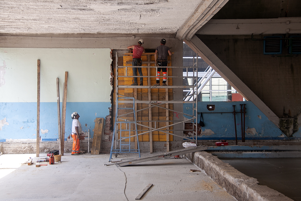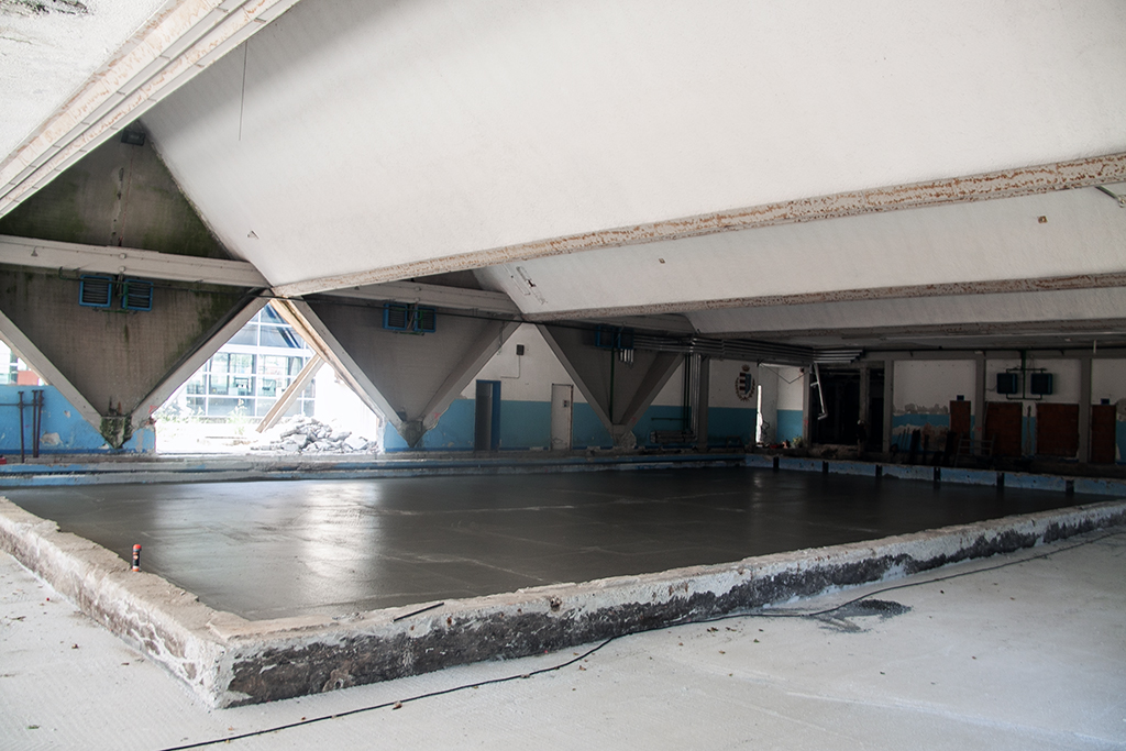 I lavori stanno avanzando secondo cronoprogramma. “Le tribune sono state demolite, quella che una volta era la vasca è stata riempita ed è stato fatto il massetto che dovrà in futuro sostenere le pavimentazioni delle sale – ha spiegato Zanacchi -, anche gli spogliatoi della convertibile fanno parte del cantiere in corso”.