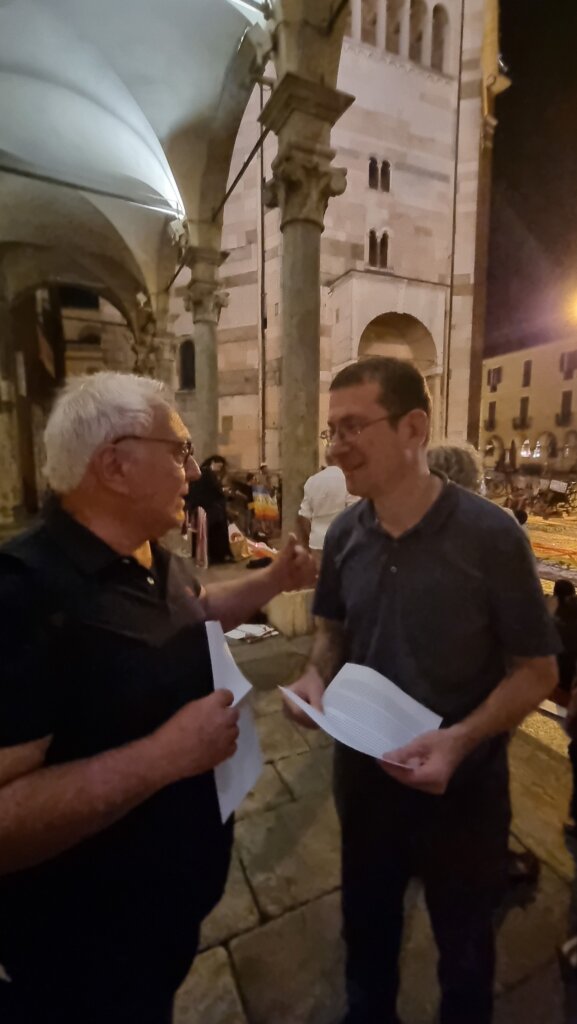 Tanti cremonesi, ma molte anche le persone arrivate da fuori città, per tenere alta l’attenzione su questa martoriata area del Medio Oriente che non ha pace da 80 anni. Si sono alternati vari interventi, con letture di poesie sia in arabo che in italiano, intermezzi musicali e riproduzione delle registrazioni sonore provenienti da Gaza sotto i bombardamenti.