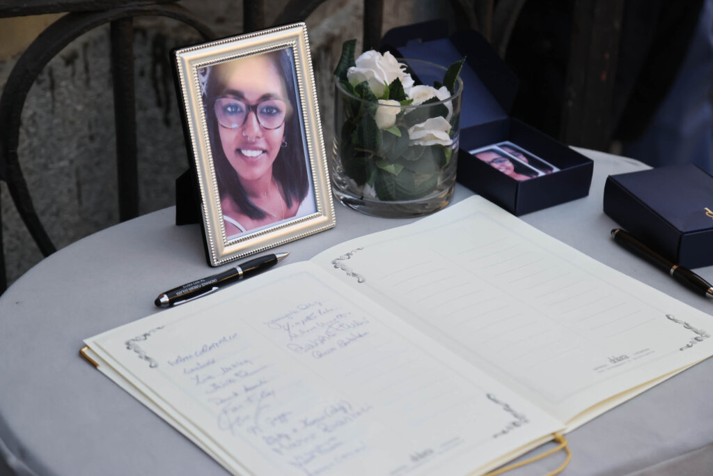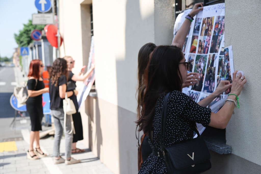 Vicino alla chiesa un cartellone preparato dalle amiche della ragazza, con alcune foto e una frase degli 883: “per ogni istante, ogni giorno, ogni attimo che ci hai regalato, grazie mille”.