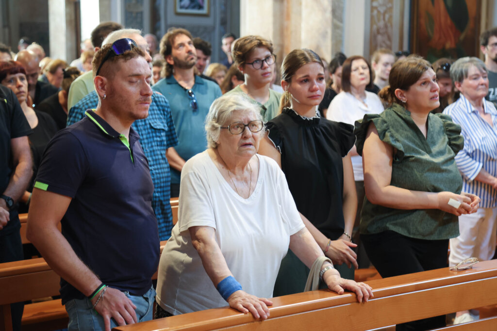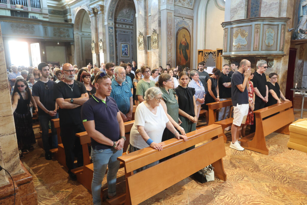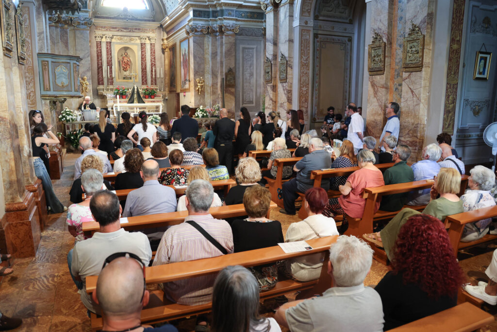 Un cartellone appeso con foto di momenti passati felici, lacrime sincere e una chiesa così gremita da non riuscire a contenere i tanti arrivati per dire addio ad una vita spezzata troppo presto.