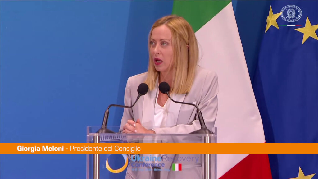 ROMA (ITALPRESS) – “Questa conferenza è un evento estremamente significativo. Ha riunito attorno a un obiettivo comune un numero estremamente importante, significativo di nazioni, di organizzazioni internazionali, di autorità locali, di aziende, di realtà della società civile, con l’obiettivo comune di aiutare l’Ucraina a costruire quel futuro di pace, quel futuro di libertà, quel futuro di sovranità che la Russia con la sua guerra di aggressione vorrebbe negare, e che invece il popolo ucraino continua a difendere con un orgoglio, con una determinazione che sono un esempio per tutti noi”. Lo affermato il presidente del consiglio Giorgia Meloni nella conferenza stampa congiunta con il presidente ucraino Volodymir Zelensky nell’ambito della Ukraine Recovery Conference.