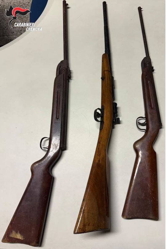Dopo gli opportuni accertamenti effettuati presso la Stazione Carabinieri di Soresina, la donna è stata denunciata all’Autorità Giudiziaria di Cremona per porto abusivo di armi. I fucili e la pistola sono state sequestrati e sarà compito dei Carabinieri di Soresina effettuare i necessari approfondimenti per dedurne la provenienza.