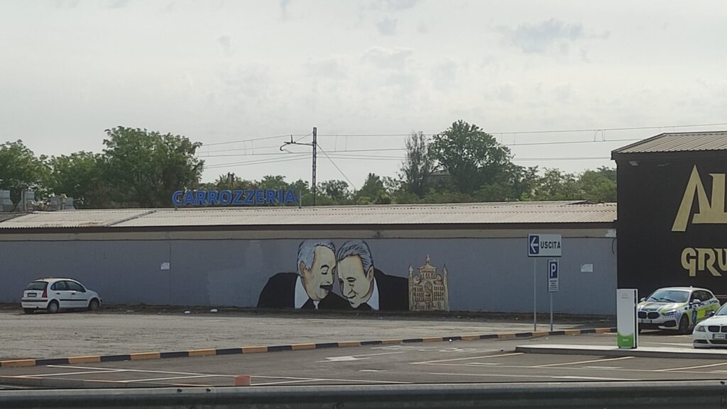 Apparso a inizio agosto, l’affresco raffigura i giudici Giovanni Falcone e Paolo Borsellino nell’iconica posa che li vede conversare fianco a fianco: un omaggio a 33 anni dalla loro scomparsa. Sullo sfondo grigio spicca anche una piccola immagine del Duomo di Cremona, un riferimento al territorio.