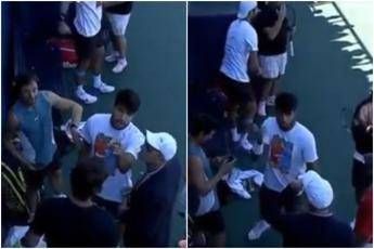 Durante la ‘riunione’ però, lo sguardo dello spagnolo si è posato sulla telecamera che lo stava riprendendo dall’alto e si è lasciato andare a un gesto di stizza. Alcaraz l’ha prima indicata e poi se ne è lamentato apertamente con il suo allenatore e tutto il team, lasciando trapelare tutto il suo nervosismo per una ripresa che, secondo lui, è stata decisamente invadente e indiscreta.