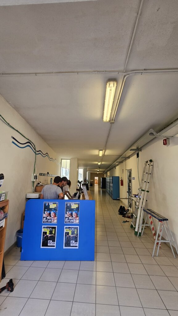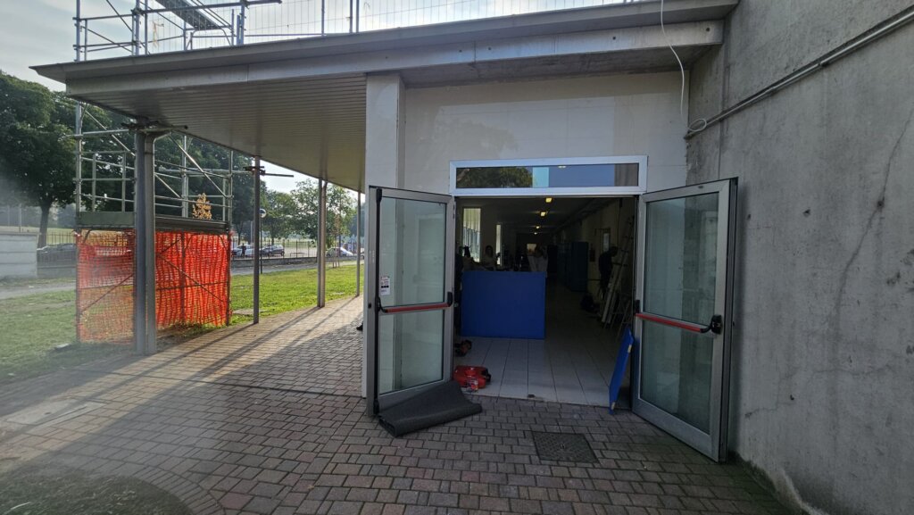 Dunque, l’ingresso alla vasca olimpionica è ora possibile da un accesso laterale alla struttura facilmente raggiungibile percorrendo il porticato che costeggia il blocco spogliatoi. Nel corridoio interno è stata allestita la reception e la segreteria con tutta la strumentazione tecnologica necessaria ad accogliere gli utenti.