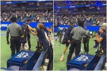 Tutti vogliono un ‘pezzo’ di Jannik Sinner, qualcuno anche troppo. Dopo la vittoria negli ottavi degli Us Open 2025 contro Alexander Bublik, match in cui il tennista azzurro si è imposto nettamente in tre set con il punteggio di 6-1, 6-1, 6-1, regalandosi il derby azzurro contro Lorenzo Musetti ai quarti. Al termine della partita il numero uno azzurro si è dovuto però difendere da un tentativo di ‘furto’ da parte di uno spettatore, che da bordocampo si è reso protagonista di un comportamento decisamente troppo invasivo.