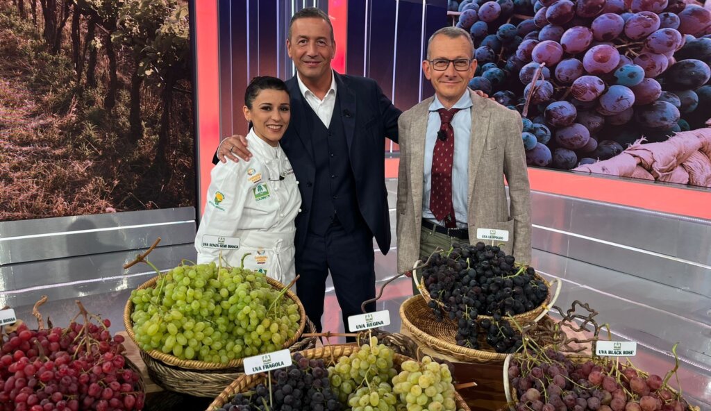 Lorenzo Bazzana, una presenza ormai di famiglia per i telespettatori Rai, ha proposto un focus dedicato all’uva da tavola, presentando le principali varietà, soffermandosi su differenze e proprietà. Intervenendo dietro a un tavolo traboccante di uva italiana, nelle diverse varietà e nei tanti colori, Bazzana ha offerto anche utili consigli su come riconoscere l’uva migliore, come valorizzarla e conservarla. Ha colto l’occasione per evidenziare il significato e il valore della biodiversità, grande punto di forza della nostra agricoltura e dei nostri territori.