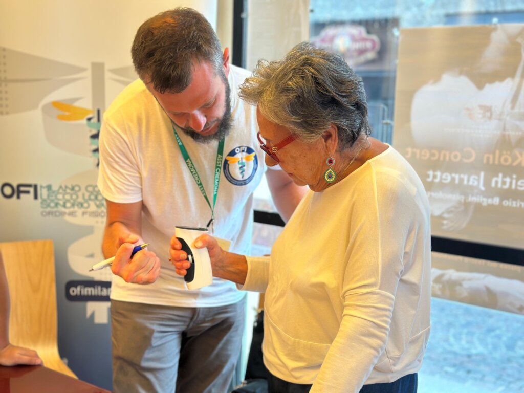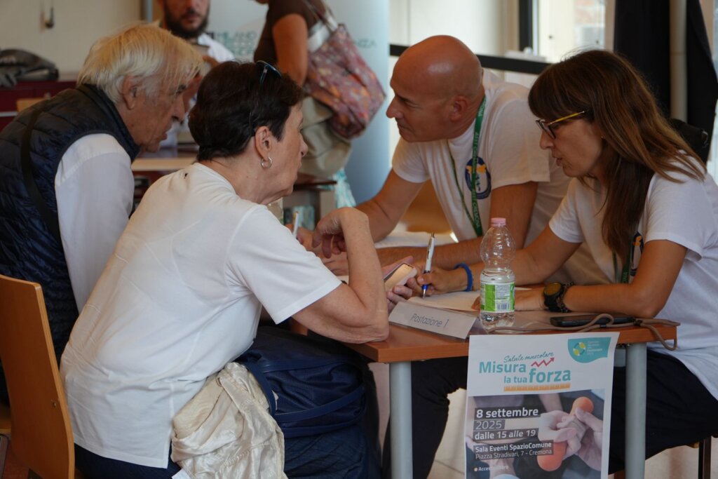 Si chiama Hand Grip Test la prova a cui si sono sottoposti oltre 200 cremonesi oggi pomeriggio a SpazioComune (203 per la precisione) nell’ambito dell’iniziativa promossa dall’Asst di Cremona per la Giornata mondiale della fisioterapia. Gli specialisti e gli allievi del corso di laurea che l’Università di Brescia svolge presso l’ospedale cremonese (con il coordinamento di Cristian Carubelli) hanno foirnito consulenza ai partecipanti dando loro la possibilità di misurare la propria forza di prensione, ossia la capacità della mano di stringere o afferrare un oggetto, un parametro importante per valutare la funzionalità e l’integrità dell’arto superiore e la salute generale di una persona.