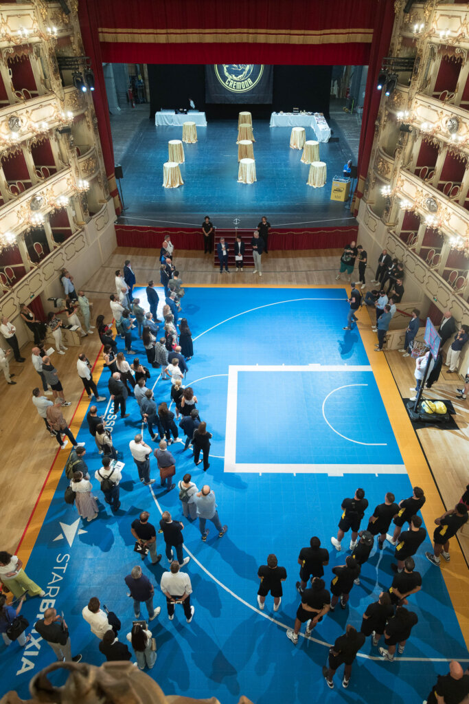 La platea, temporaneamente priva delle storiche sedute in fase di sostituzione, è stata trasformata in un inedito playground. Lì, al centro, si è tenuto l’Opening Party dedicato a partner, sponsor e amici della Vanoli. A fare gli onori di casa, la squadra al completo, lo staff tecnico e dirigenziale, con momenti di musica dal vivo, DJ set a cura di Radio Bruno Lombardia e una cena servita direttamente sul palcoscenico.