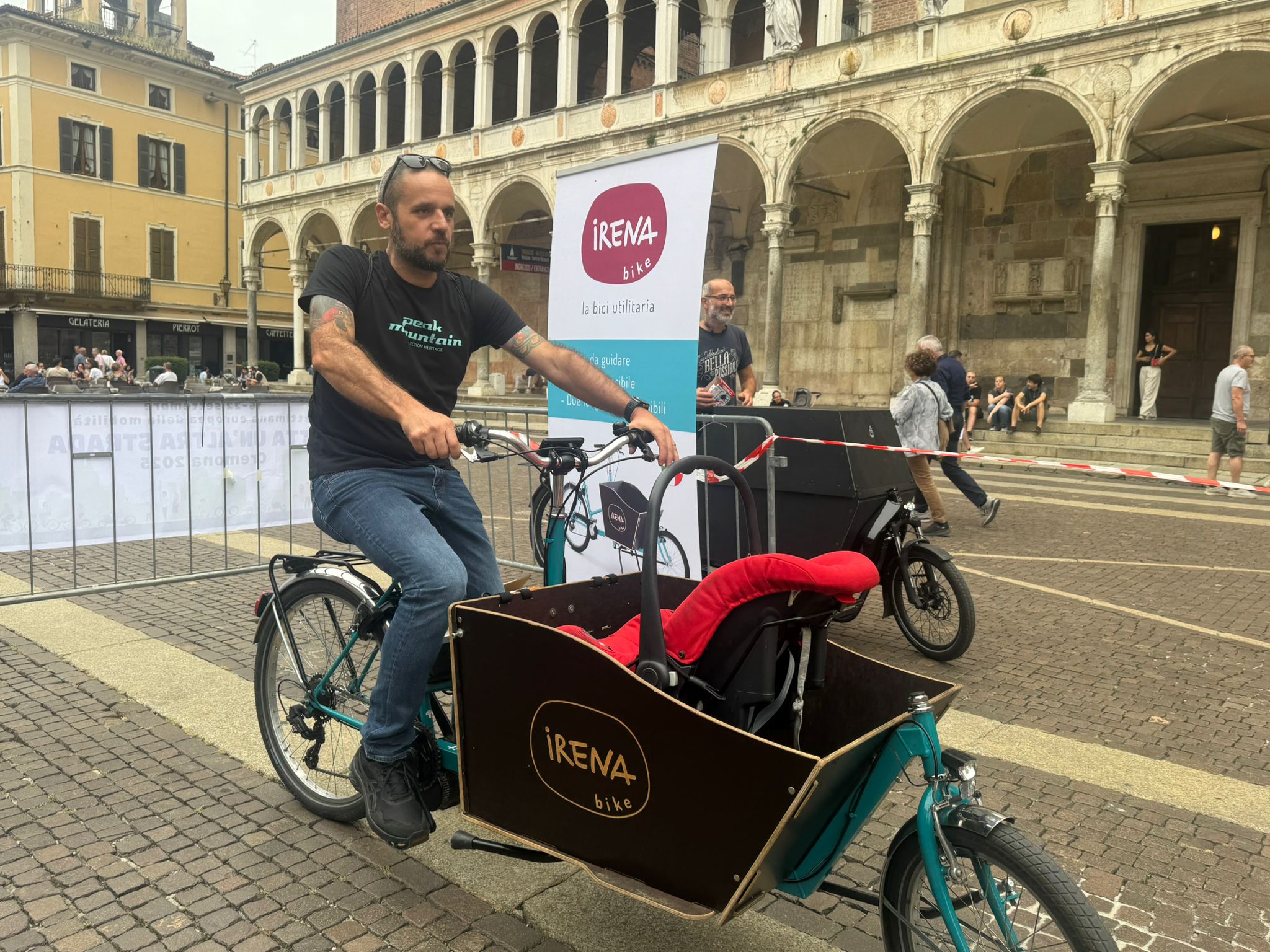 In piazza del Comune, un pomeriggio all’insegna della mobilità. È stato infatti realizzato un piccolo circuito per provare le cargobike, una bici da carico per portare bambini, merci, animali.