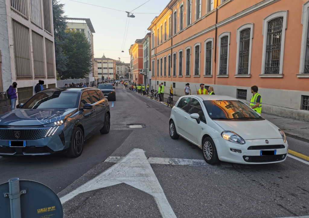 Continuano gli appuntamenti della Settimana della Mobilità, con la Fiab che ieri ha allestito una “catena di bici” in via Palestro, lungo la striscia gialla della ciclabile. Via Palestro è la strada delle scuole superiori per antonomasia, che da sempre vede un intenso traffico veicolare. 25 le persone intervenute con le biciclette per rendere evidenti i problemi legati alla commistione tra le due ruote e i veicoli nelle ore di ingresso alle scuole. Presente anche la Polizia locale alla quale è stato fatto notare come il divieto di ingresso da via Ugolani Dati in orario di entrata scuola, venga costantemente ignorato.