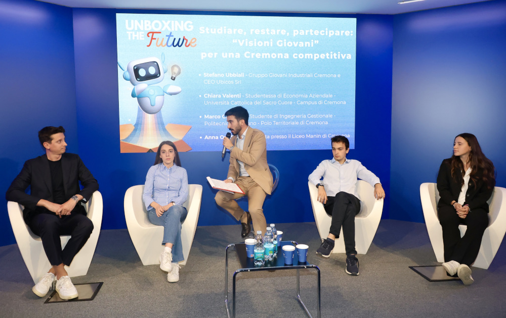 La seconda tavola rotonda, intitolata Studiare, restare, partecipare: Visioni Giovani per una Cremona competitiva. Le sfide della formazione e dell’attrattività territoriale viste dai giovani, ha dato spazio alle testimonianze dirette dei ragazzi. Stefano Ubbiali (Gruppo Giovani Industriali Cremona e CEO di Ubicos Srl), Chiara Valenti (studentessa di Economia Aziendale presso l’Università Cattolica – Campus di Cremona), Marco Carabelli (studente di Ingegneria Gestionale al Politecnico di Milano – Polo Territoriale di Cremona) e Anna Oradini (diplomata al Liceo Manin di Cremona) hanno condiviso esperienze e idee sulle opportunità formative e lavorative locali.