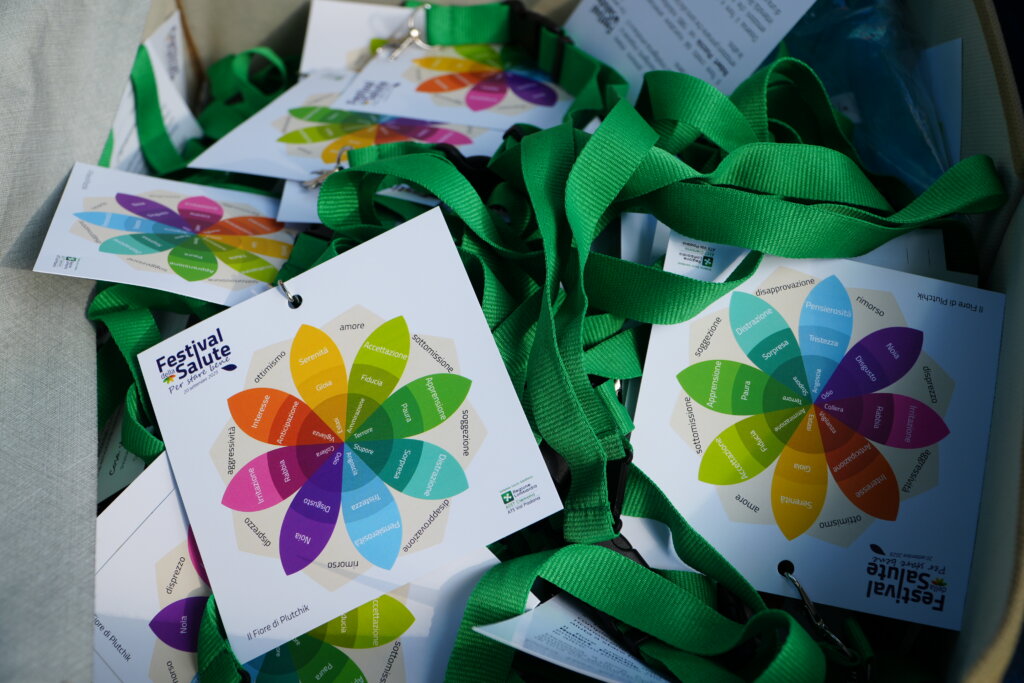 Ogni partecipante ha ricevuto in omaggio all’ingresso del parco il “fiore delle emozioni” (simbolo del Festival). Le nostre emozioni possono essere complesse, intense e travolgenti. Imparare a riconoscerle allena l’intelligenza emotiva e ci aiuta a stare bene. Il fiore creato dal ricercatore americano Robert Plutchik nel 1980, infatti, individua otto emozioni primarie che sono alla base di tutte le altre. Serenità, gioia, ottimismo, interesse, ammirazione, sono alcune delle emozioni positive raccolte parlando con le persone nel parco.