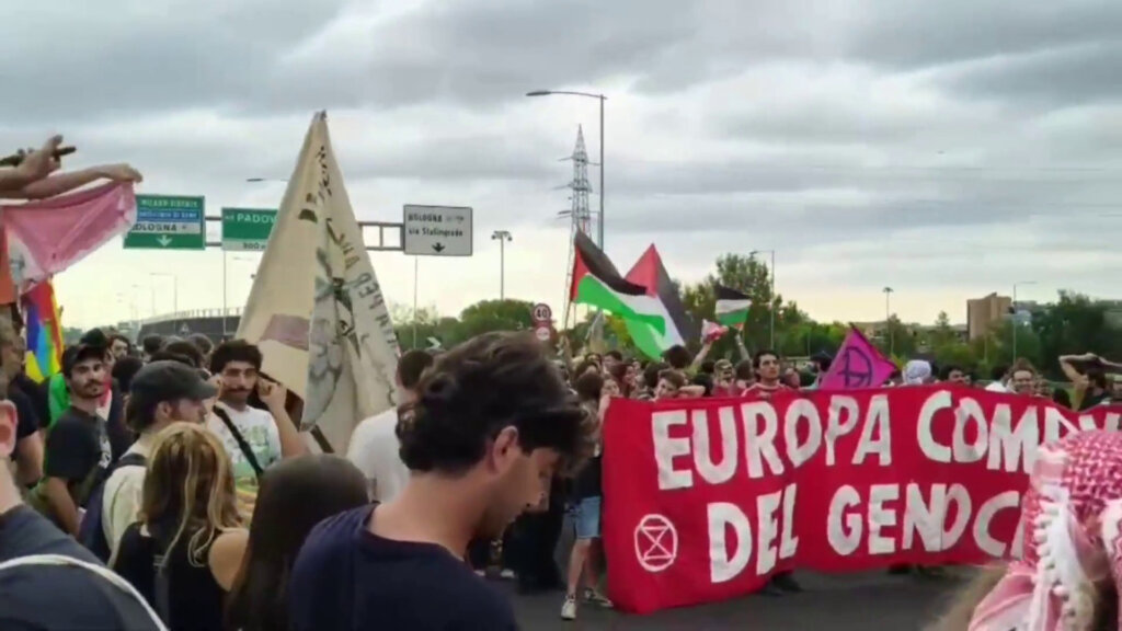 BOLOGNA (ITALPRESS) – Il corteo per Gaza, organizzato da sindacati di base e studenti, è entrato nella tangenziale di Bologna e l’ha di fatto bloccata. Alcuni manifestanti sono entrati anche con fumogeni e bandiere, interrompendo il traffico. Ecco le immagini della manifestazione.