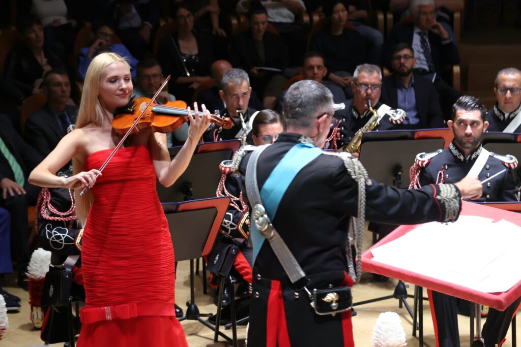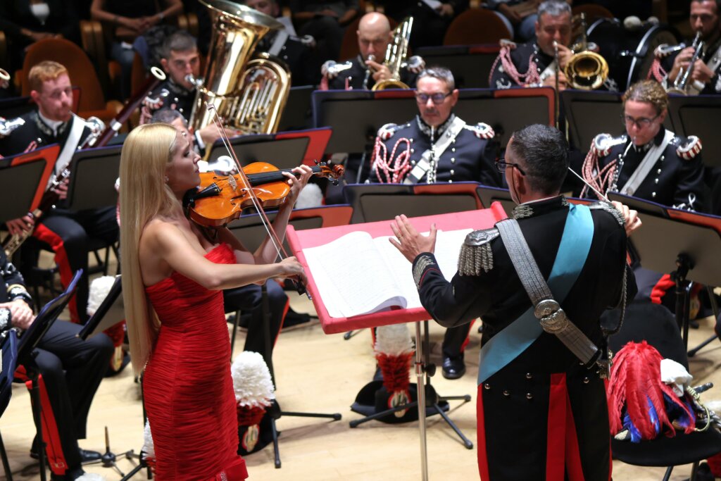 Colpo di scena della serata, la presenza della celebre violinista Anastasiya Petryshak, che ha accompagnato la banda, aprendo il concerto con “Meditation”, brano tratto dall’opera Thais di Massenet.