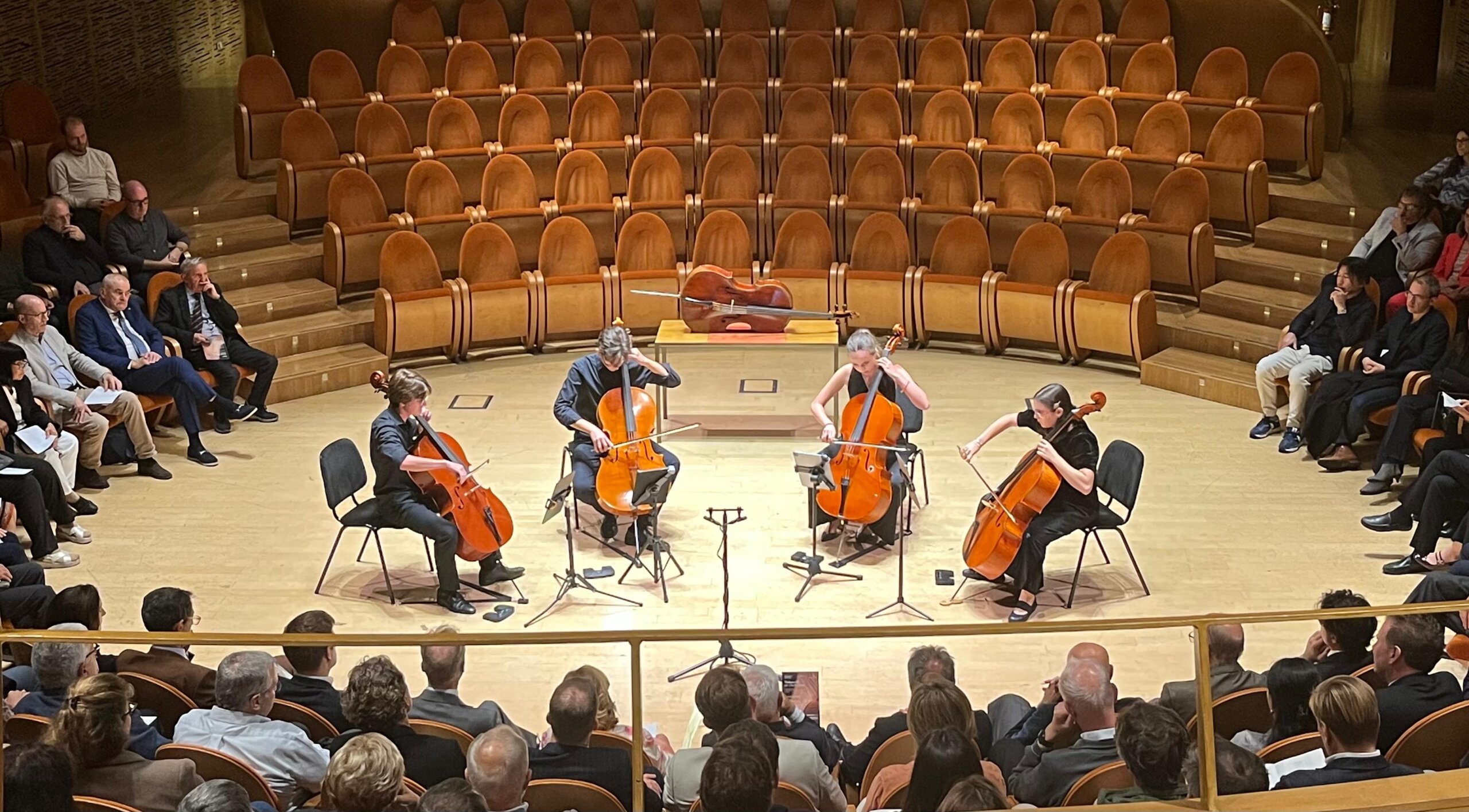 Un programma già di per sé prestigioso, arricchito grazie al suono di altri strumenti suonati dallo Stauffer Cello Quartet, che dopo i discorsi iniziali ha preceduto il vero e proprio “svelamento”.