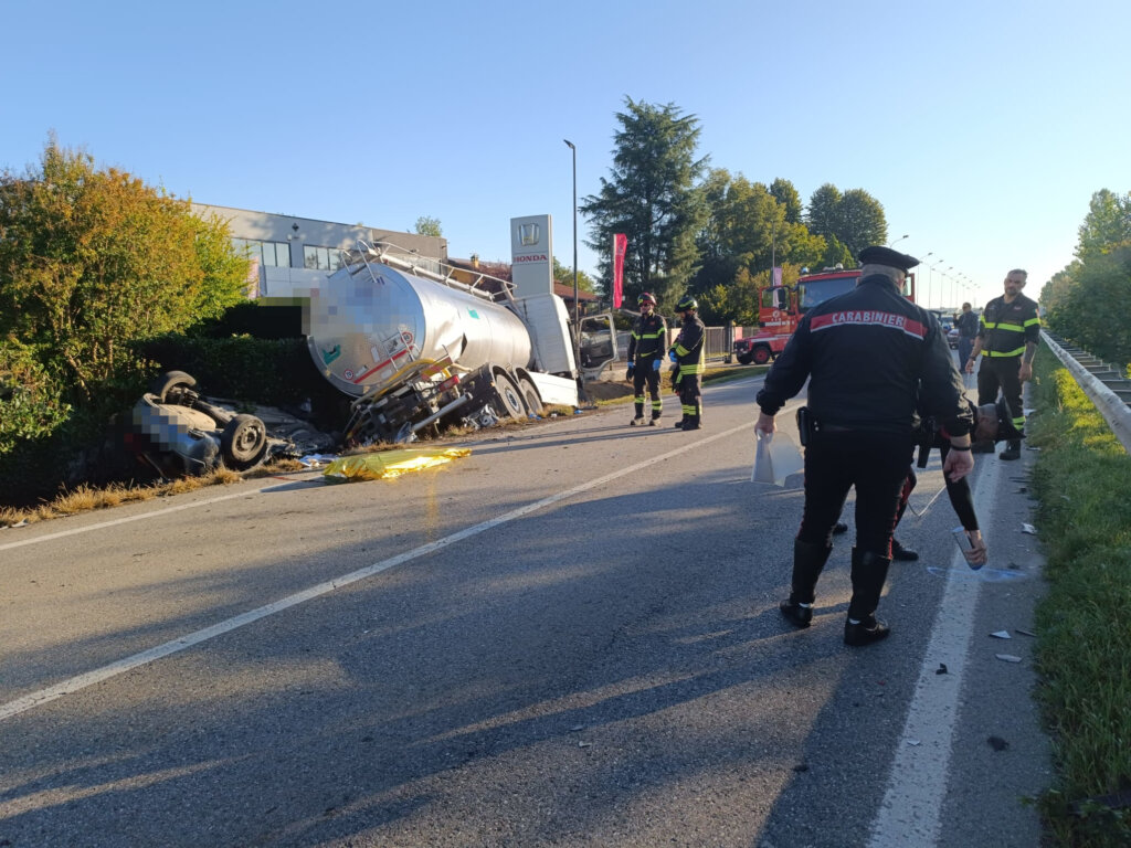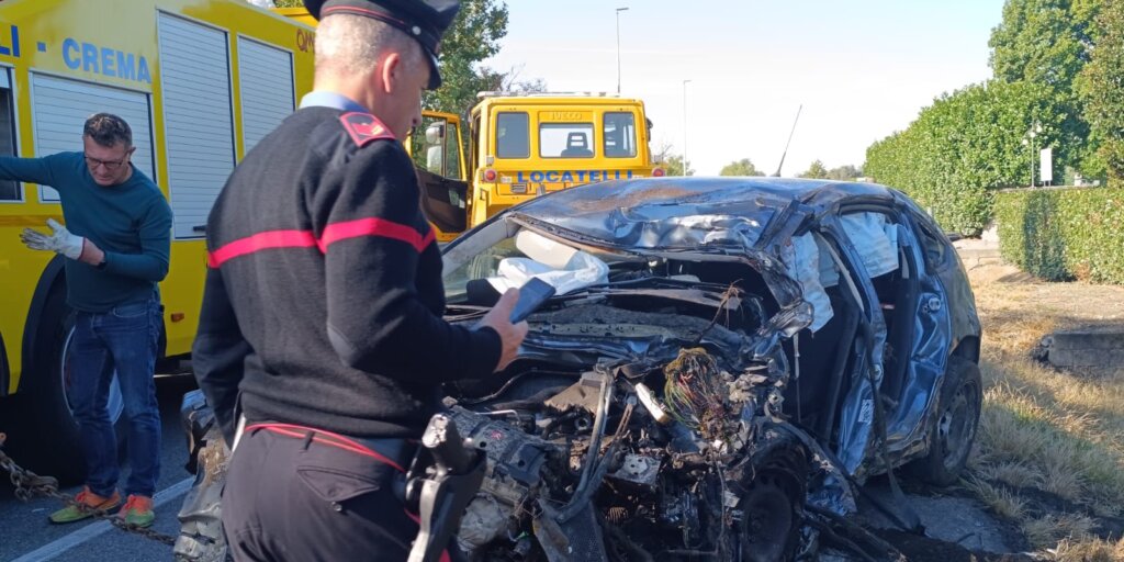 Domenica di sangue sulle strade cremasche, a causa di un incidente avvenuto poco prima delle 8 sulla statale 235 a Bagnolo Cremasco, all’altezza della concessionaria Honda. Un camion adibito a trasporto di liquidi alimentari, condotto da un 48enne della provincia di Lodi in viaggio verso Crema, si è scontrato con una Citroen C4 alla cui guida si trovava un uomo di 51 anni di Crespiatica (Lodi) che percorreva la strada in senso opposto. Un urto frontale violentissimo, il camion ha praticamente trascinato l’utilitaria nel fosso, schiacciandola, finendo poi la corsa contro la recinzione del concessionario. Nulla da fare per il 51enne, morto sul colpo. Per soccorrerlo, era stata allertata anche l’eliambulanza partita da Milano, che purtroppo non è servita.