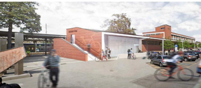 La parte di piazzale di fronte al fabbricato “storico” della stazione e via agli Scali sono ora a disposizione del Comune per attuare gli interventi previsti. Quello più significativo è la realizzazione di una velostazione multipiano nel fabbricato confinante con l’immobile delle Poste: si svilupperà su due piani per un totale di 350 mq con accesso indipendente, l’accesso avverrà mediante porte scorrevoli mediante carta magnetica. Oltre agli stalli (200 di cui 24 con ricarica elettrica) per il parcheggio delle biciclette è previsto l’inserimento di un’area lockers.