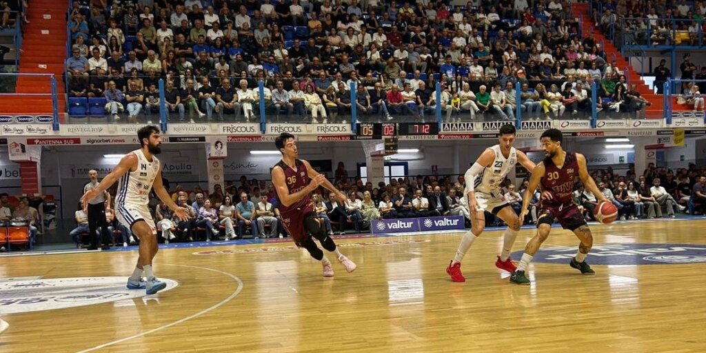 Secondo periodo in salita per la Ferraroni Juvi Cremona: contratta, perde palloni che la Valtur Brindisi trasforma in punti, anche con episodi fortunosi. Bechi spende un altro timeout, ma l’inerzia non cambia. Brindisi accelera in transizione e a rimbalzo d’attacco, la Juvi si incarta sulle linee di penetrazione e dall’arco a metà del quarto era ferma a 4/11. Il divario tocca i venti e resta tale fino all’intervallo: 53-30. Radonjic a 13, Alessandro Panni tiene in piedi gli oroamaranto con 12.
