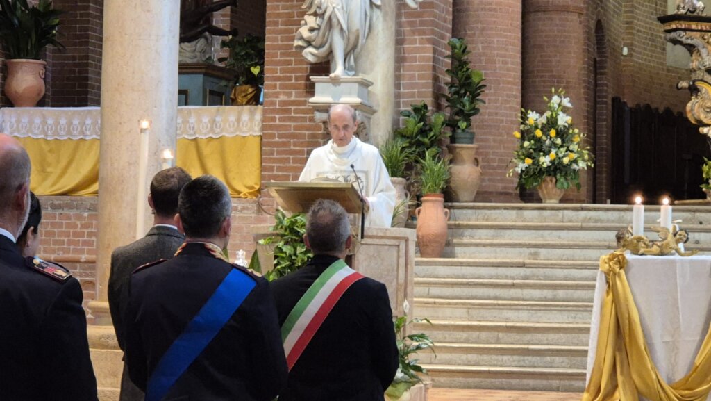 “Chi ha cura della comunità ben si accorge di quanto male vi serpeggia” ha detto il parroco nella sua omelia, rivolgendosi ai poliziotti. “Il male che voi cercate di arginare nella società, la fatica del vivere insieme e di essere comunità. A volte si assiste a una disgregazione preoccupante, e voi vi spendete per fermarla. A volte dovere fermare una intera città per prevenire la violenza, come nel caso degli eventi sportivi. A volte succedono fatti di sangue e dovete sorvegliare con mille occhi, perche la gente non si sente sicura e guarda a voi con fiducia. E voi avete questo compito importante e pericoloso di vegliare sulla comunità“.