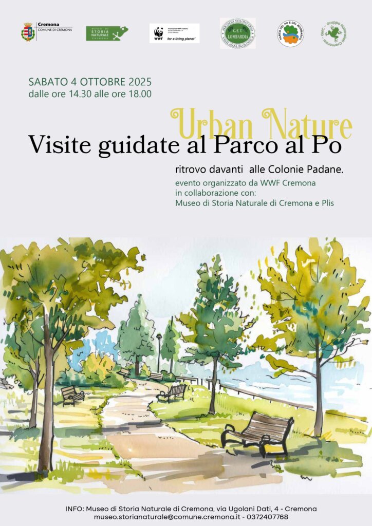 Nel fine settimana del 4 e 5 ottobre torna l’evento nazionale promosso dal WWF Urban Nature: il festival della Natura in città che quest’anno giunge alla sua IX edizione. WWF Cremona, in collaborazione con il Museo di Storia Naturale di Cremona, il PLIS del Po e del Morbasco, il Gruppo Naturalisti Cremonesi e le Guardie Ecologiche Volontarie, aderisce all’iniziativa organizzando il 4 ottobre, dalle 14:30 alle ore 18:00, visite guidate al Parco al Po, per conoscere da vicino il patrimonio naturale che vive e cresce in città e lungo il grande fiume.