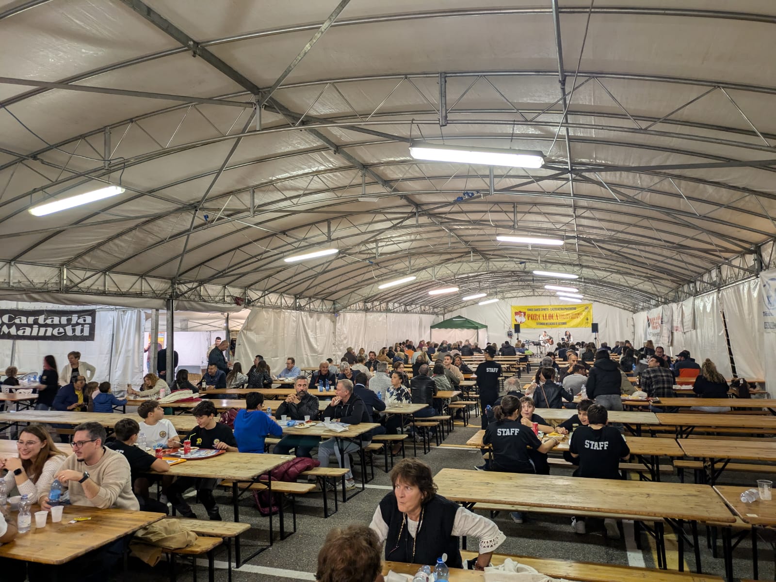 Fino al 12 ottobre (con pranzo anche la domenica) a Croce S. Spirito di Castelvetro Piacentino torna la tradizionale sagra Porcaloca: venerdì sera come sempre afflusso importante per gustare Cotechino Vaniglia e l’oca. Amati anche gli anolini in brodo e al ragù, torta fritta e salumi.