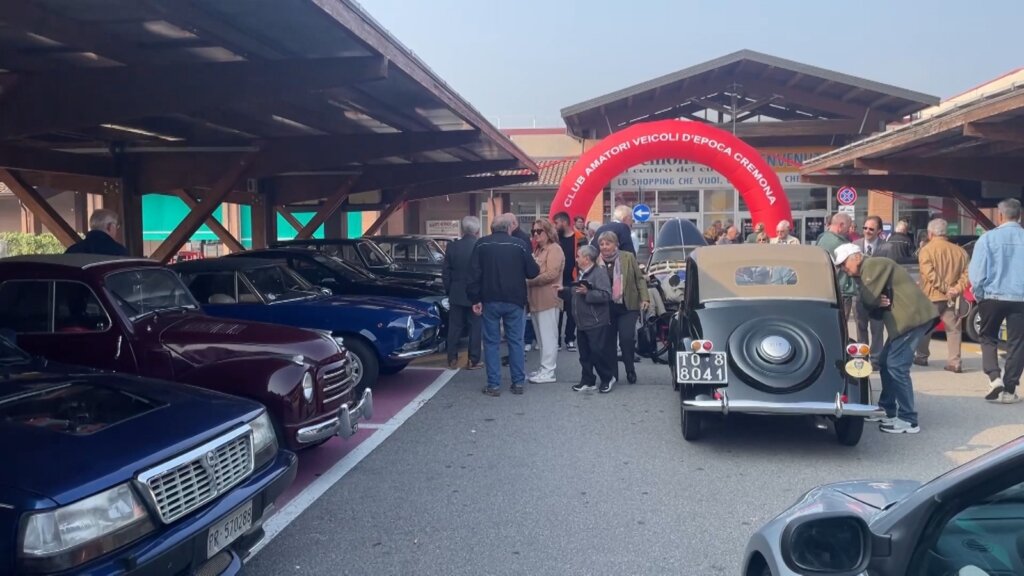 Seconda edizione dell’evento Ruote d’epoca nella giornata di oggi al Centro Commerciale CremonaDue di Gadesco Pieve Delmona, organizzato dal Cavec (il Club Amatori Veicoli d’Epoca di Cremona).