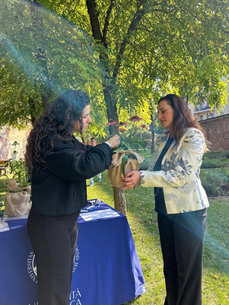Una tradizione che “ha un’origine anche biblica, in Genesi si racconta che Dio dopo aver creato l’uomo ad Oriente pianta un giardino e qui vi sposta l’uomo. Questo gesto dice qualcosa ad ogni uomo: Dio si prende cura della vita in tutte le sue forme, anche più semplici” ricorda l’assistente pastorale don Maurizio Compiani, “e così ogni volta che l’uomo si prende cura di qualunque tipo di vita, fa qualcosa che lo lega a Dio. Così facciamo noi oggi: all’inizio di ogni anno accademico ci piace fare un gesto che esprima il prendersi cura dell’Ateneo nei confronti degli studenti e dello studente verso la sua vita, perché inizia un percorso di studi che gli servirà per il futuro: farlo con impegno e serietà potrà fare qualcosa di buono anche per gli altri”.
