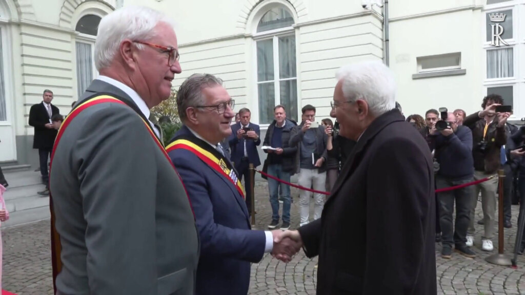 BRUGES (BELGIO) (ITALPRESS) – Ultimo giorno di Visita di Stato nel Regno del Belgio per il presidente della Repubblica Sergio Mattarella. Dopo gli impegni a Bruxelles e a Marcinelle dei giorni scorsi, il capo dello Stato si è trasferito a Bruges, tappa finale del suo viaggio. Nella città fiamminga, Mattarella ha raggiunto la Residenza del Governatore delle Fiandre Occidentali, dove è stato accolto dal Governatore, Carl Decaluwé, che gli ha rivolto un discorso di benvenuto, e dal sindaco di Bruges, Dirk De Fauw. Al termine dell’incontro, il presidente ha fatto visita al Municipio, per poi raggiungere l’aeroporto di Ostenda-Bruges per far rientro a Roma nel primo pomeriggio.