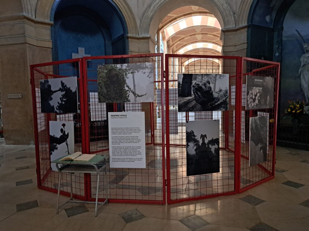 La mostra fotografica Respiro Vitale, già esposta nell’ex Sala Violini di Palazzo Comunale, è ora collocata nella crociera di levante del Civico Cimitero, una delle parti più antiche del complesso monumentale opera dell’architetto Luigi Voghera.