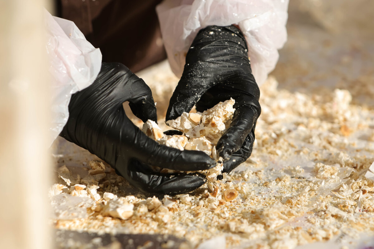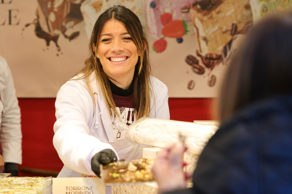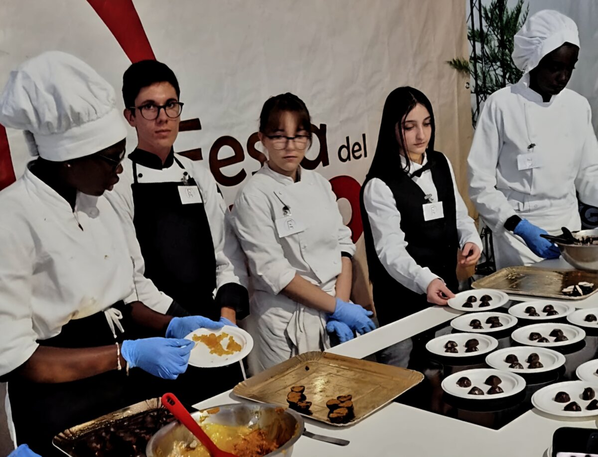 Per trovare lo spunto per lo show cooking di sabato pomeriggio, gli studenti dell’indirizzo Enogastronomia ed Ospitalità alberghiera dell’I.I.S. “L. Einaudi” hanno puntato davvero in alto. Ed il risultato non ha deluso le aspettative così ambiziose. Le quattro praline golose dedicate alle principali fasi della giornata sono andate a ruba: “Aurora è a base di cioccolato bianco – spiega il professore di cucina Massimiliano Ruscelli – in Mezzogiorno spiccano la ricotta dolce, la cannella ed il peperoncino. Il Vespro ha un ripieno di noci e riproduce i colori del tramonto. Cacao amaro, crema di nocciole e rhum caratterizzano il cioccolatino che rappresenta la Notte. Ogni preparazione – conclude il docente – contiene torrone (morbido, croccante, classico, al fondente) e mostarda Luccini, rispettivamente di agrumi, mele, zucca e castagne. Le proposte studiate per la kermesse potrebbero finire in un ricettario da realizzare in collaborazione con imprenditori locali del settore agroalimentare. Al momento, si tratta solo di un’idea: ci auguriamo che il progetto vada in porto”.