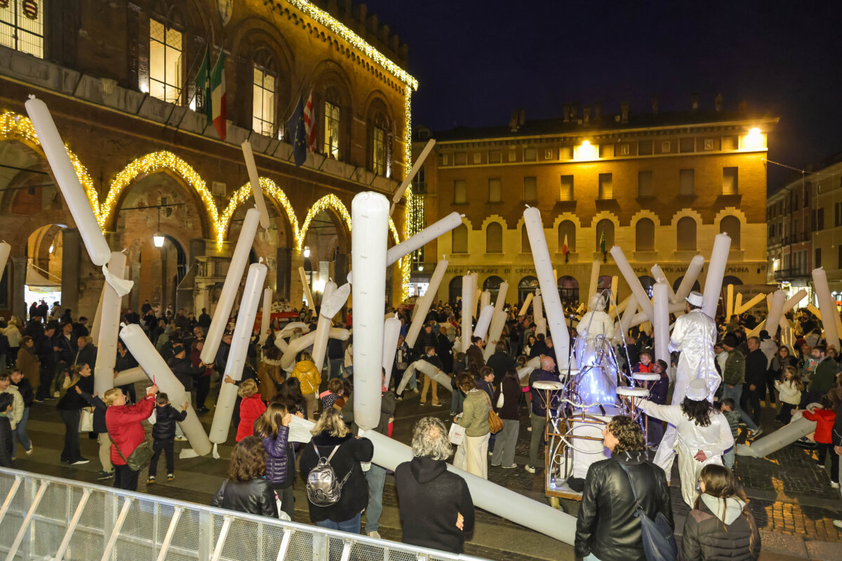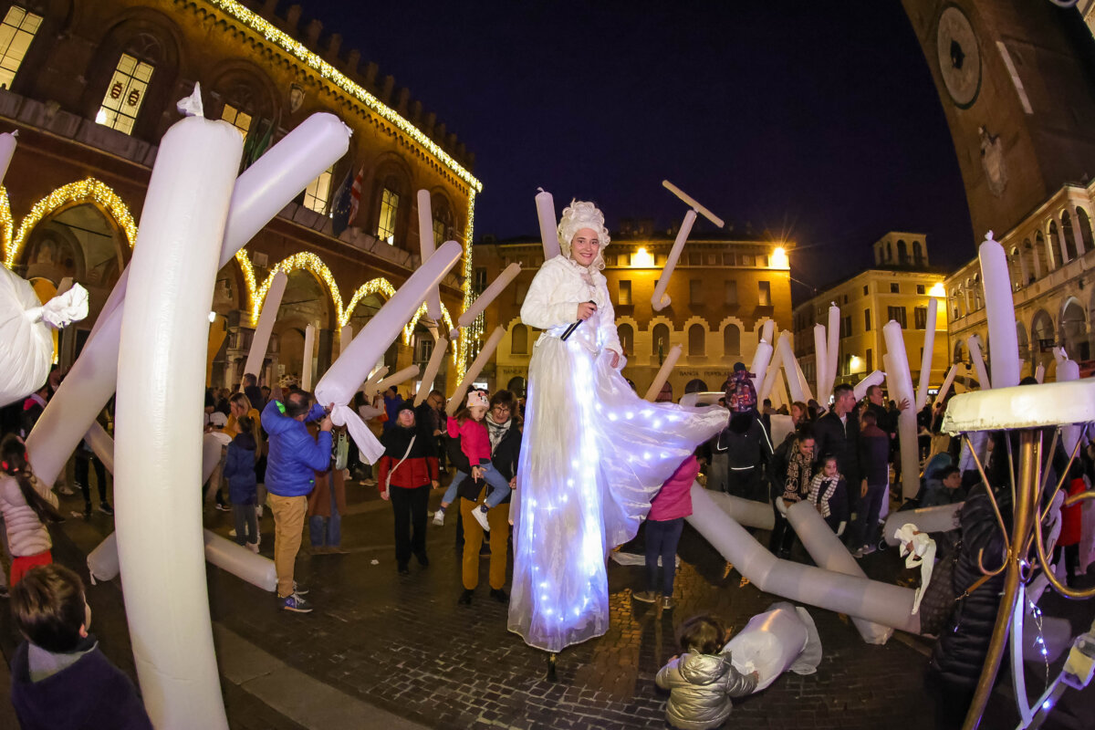 E ancora: la spettacolare white parade itinerante, che si è conclusa in piazza con il Gioco dei palloni: centinaia di palloni bianchi arrotolati che si gonfiano correndo e assumono una forma cilindrica di 3 metri; e l’energia della band itinerante dei Barabba Gulasch.