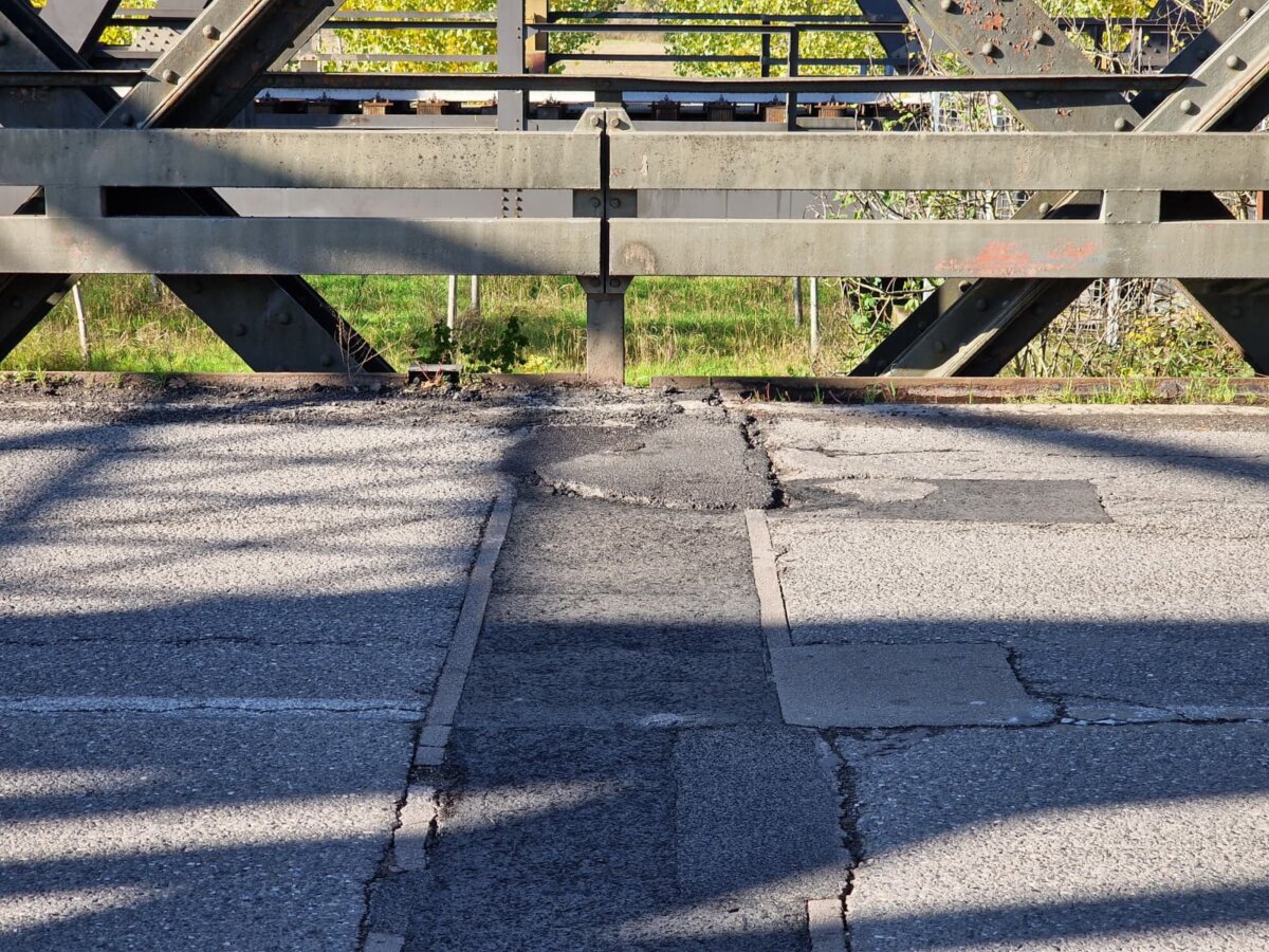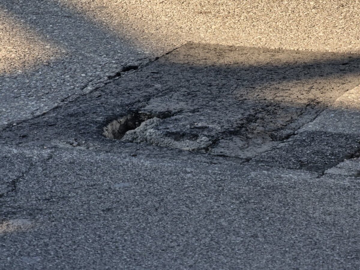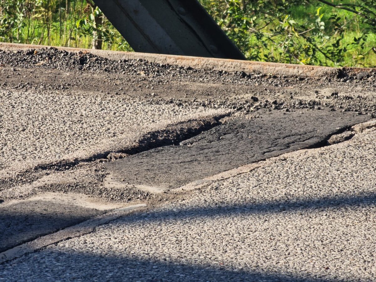 nell'asfalto-groviera sul ponte