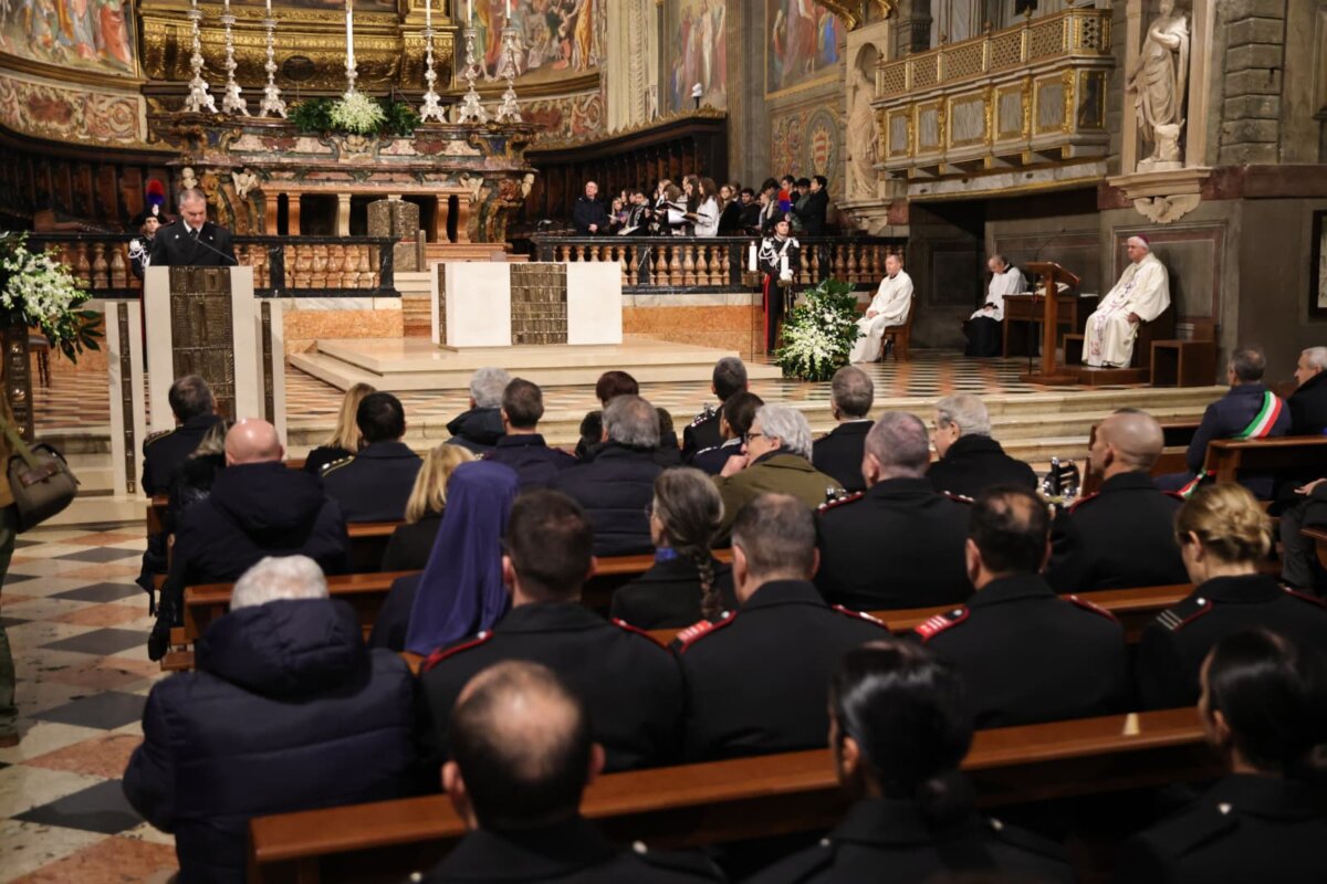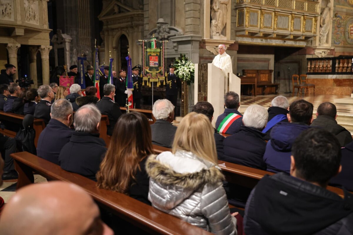 Unità di intenti, vicinanza ai cittadini, spirito di coesione e superamento delle tentazioni individualistiche: questi i tratti fondamentali dell’impegno quotidiano dei carabinieri, sottolineati nel suo discorso, preceduto dai ringraziamenti a chi ha reso la celebrazione della messa un’occasione di rinnovata coesione tra le istituzioni, a cominciare dalla rappresentanza delle associazioni combattentistiche e dagli allievi dell’istituto musicale Stradivari che hanno accompagnato con il coro la voce solista di Marina Morelli.