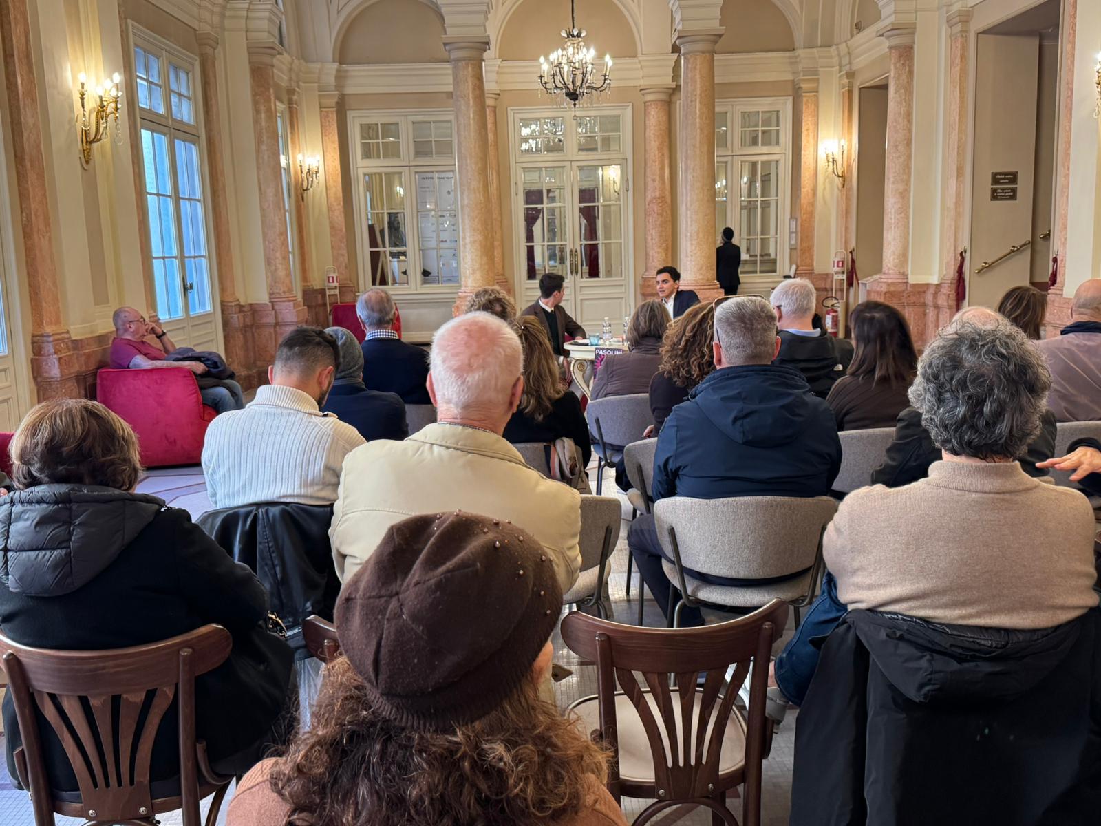 Un incontro per rileggere il rapporto tra Pasolini ed Pound, due figure irregolari e visionarie della poesia del Novecento. Nel foyer un pubblico di tutte le età ha seguito l’incontro, secondo di tre conferenze dedicate proprio a Pasolini.