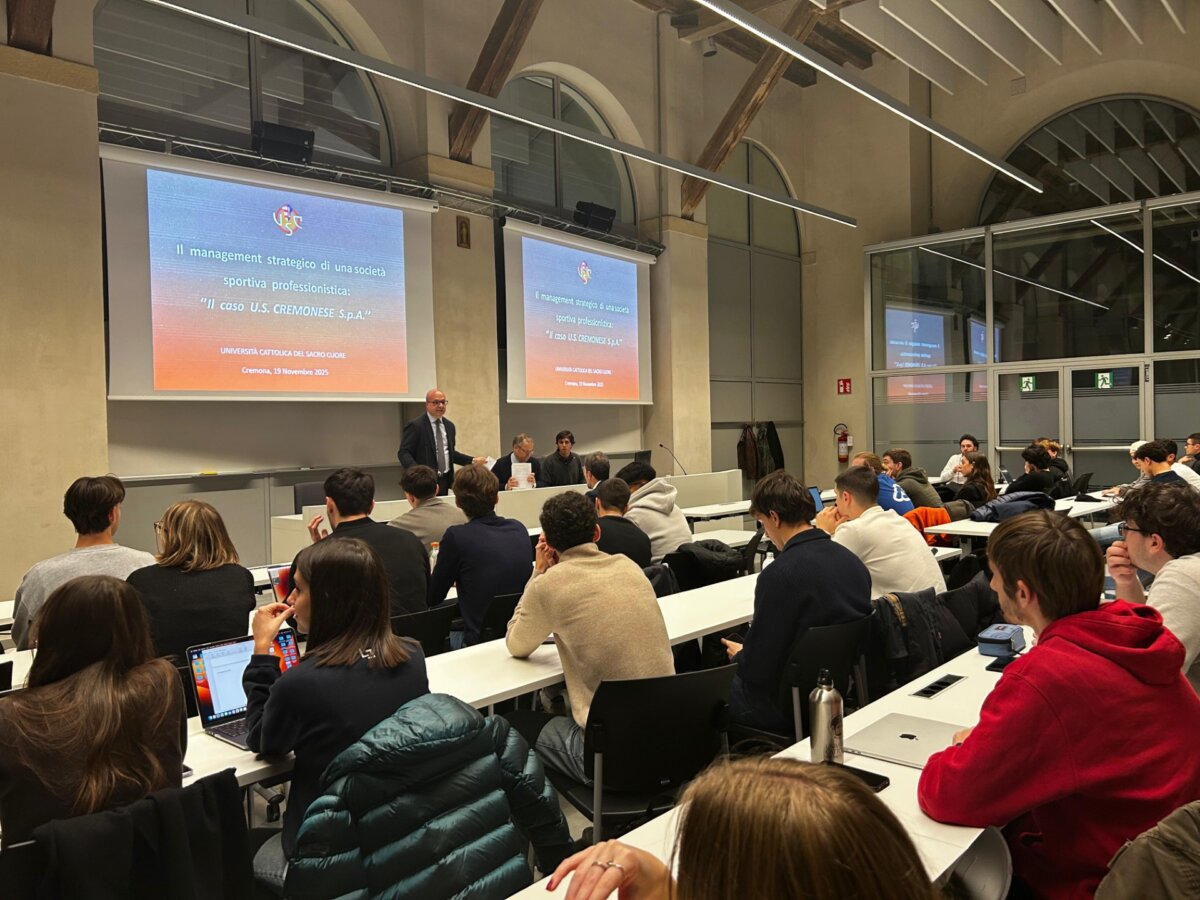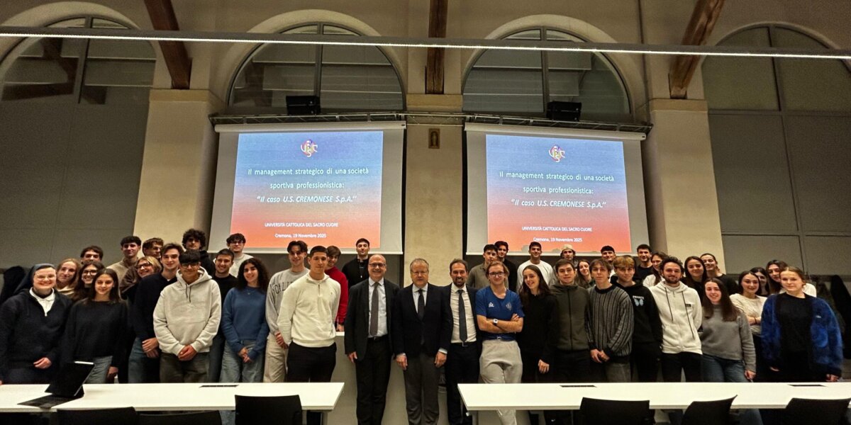 La Cremonese al centro e protagonista del seminario “Il management strategico di una società sportiva professionistica: il caso U.S. Cremonese Spa” in Università Cattolica. Per studiare i segreti di questa storia di successo, imparando direttamente dai suoi protagonisti, nel campus di Santa Monica dell’Università Cattolica del Sacro Cuore. L’idea è stata del Professor Fabio Antoldi, docente di Strategia aziendale e Direttore del Centro di ricerca per lo sviluppo imprenditoriale (Cersi), che ha organizzato una lezione davvero speciale per gli studenti della laurea triennale in Economia aziendale e di quella magistrale in Management e innovazione digitale.